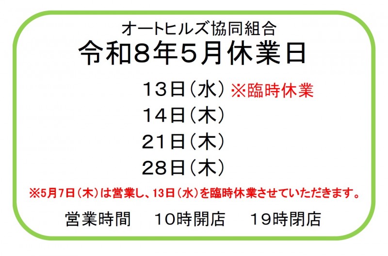 また、新企画として、5月4日(月・祝)に軽自動車の届出済未使用車を驚きの価格でビンゴ抽選販売をいたします。詳細は後日こちらのホームページで発表いたします。